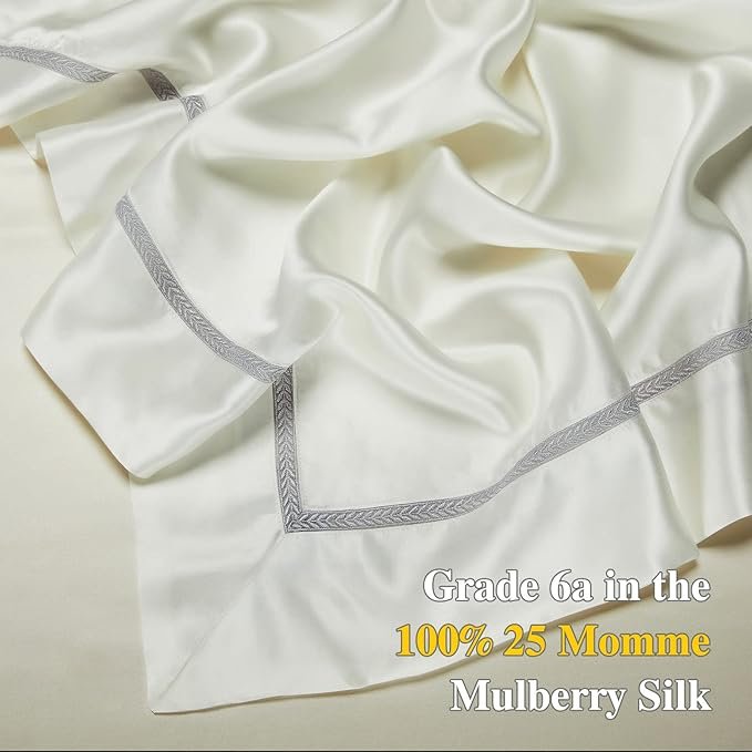 Home Luxury Bed Sheets 25 Momme Mulberry Silk King Sheet Set – White