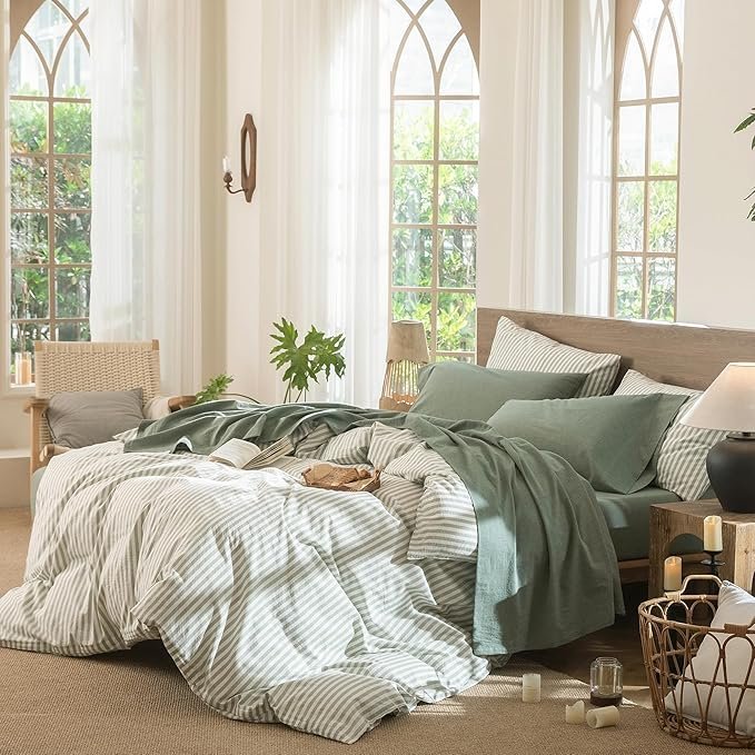 Washed Cotton Linen-Feel Queen Sheet Set – Green